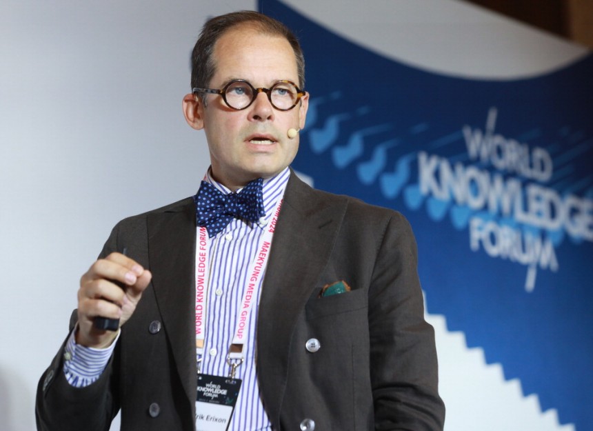 프레드리크 에릭손 ECIPE 소장이 지난해 9월 열린 제25회 세계지식포럼에서 발언하고 있는 모습. 매경DB
